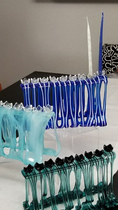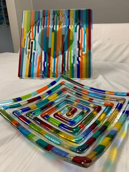 For most of her adult life, Simona has worked with a variety of art mediums including making paper-sculpting very unique 3-dimensional Hamsas. But for the past few years, Simona has discovered a new passion in Glass Art. It took just one introductory course at Fire Glass Studio and Simona was hooked. She has been coming to the studio regularly ever since, and her portfolio of glass art has grown accordingly. Her husband in fact jokes that their house is going to sink into the foundation because of all the beautiful glass work on our walls. Though the studio is more than an hour’s drive each way from her home, Simona is dedicated to her craft and we at Fire Glass are that much richer because of her passion.